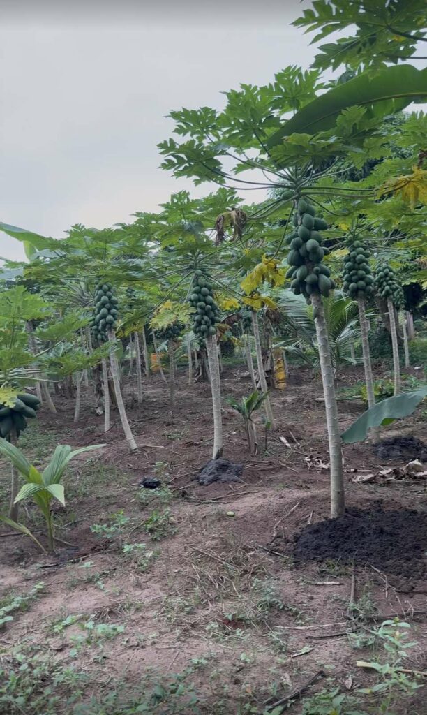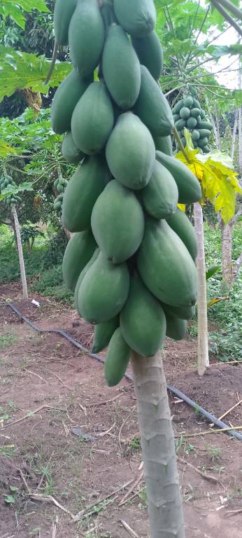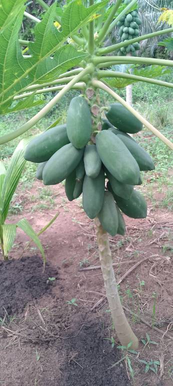Qu’est-ce devenue notre papayeraie ou mieux comment gérons-nous la récolte des papayes solo. De belles questions. Chaque semaine ou mieux tous les 3 jours environs a lieu la récolte, laquelle est livrée soit sur le marché local soit à Cotonou où le coût est plus intéressant, mais à condition que la récolte soit consistante (au moins 120 unités). La vente hebdomadaire nous fait obtenir jusqu’à 10 euros, sinon parfois plus. Pour le moment, nous réinvestissons ses petits sous pour agrandir notre espace irrigué. Plus intéressant, nous avons aussi inséré dans le champ des papayers quelques pieds de bananiers qui ont commencé par donner des fruits. Au-delà du gain, c’est la vue d’un périmètre tout verdoyant qui offre au visiteur une belle satisfaction ou force l’admiration. En outre, l’espace des papayers est contigu avec celui des arbres à pain ou des autres arbres fruitiers. Le bénéfice est donc plus que double et l’avenir s’annonce sous de bons auspices.