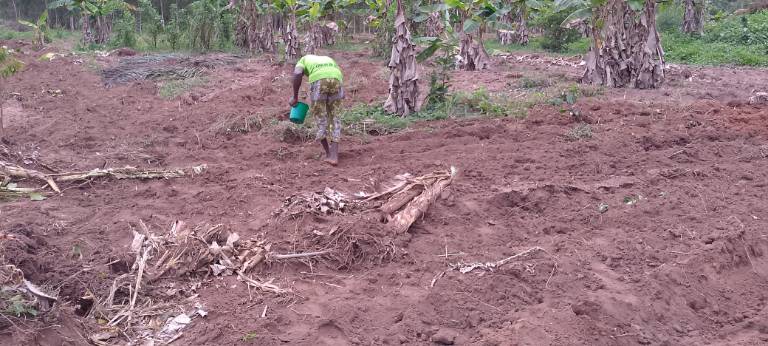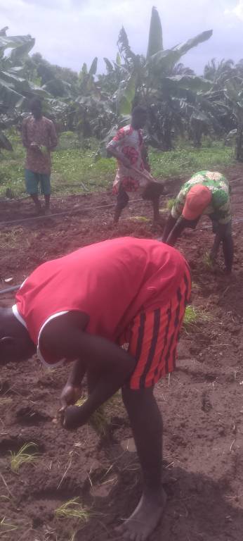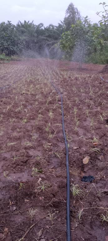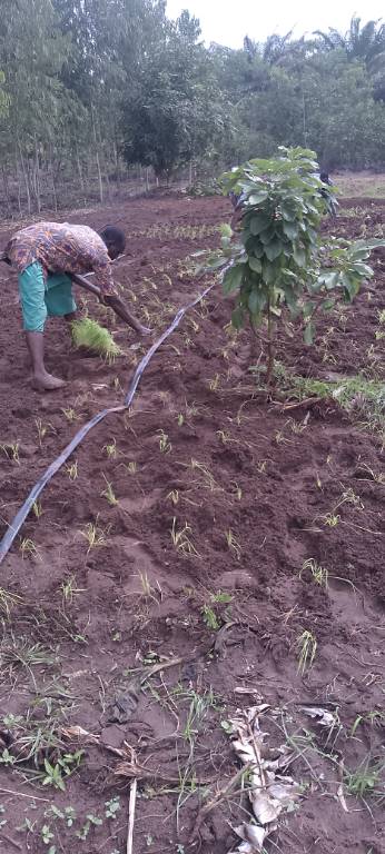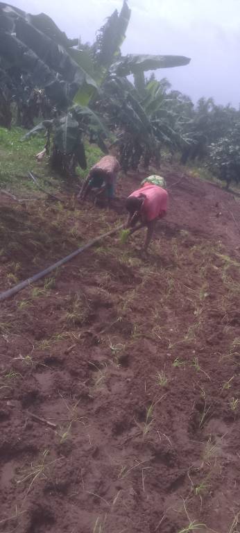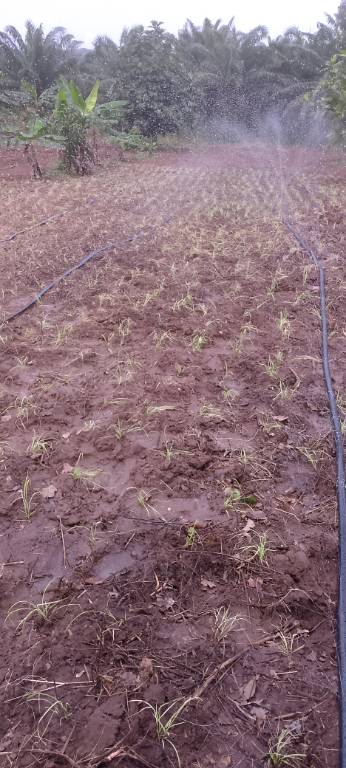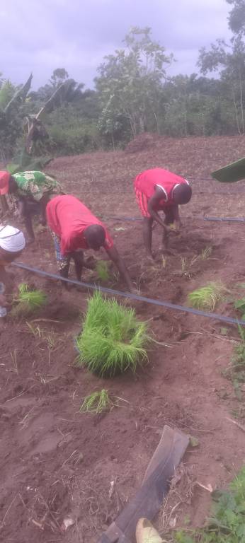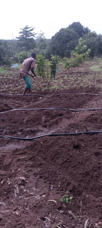 À ce titre, le projet qui retiendra d’abord notre attention est la culture du riz délocalisée. De quoi s’agit-il concrètement? Au lieu de la zone humide, nous avons apprêté un autre espace : l’ancienne zone de la bananeraie. Dans un premier temps, 10 jours durant nous l’avons soumis à un arrosage soutenu (plus de 1000 litres / jour) afin de créer les conditions propices à cette culture : une zone bien humidifiée. Puis, ce fut l’ensemencement des plantules. Naturellement, le domaine bénéficie d’un système journalier d’irrigation avec des canaux appropriés. À cet effet, un jeune ouvrier a été recruté et nous aidera à mettre en œuvre cette nouvelle expérience. Destiné normalement à la porcherie, pour l’heure, il dessert ce secteur et comble aussi le déficit en personnel dans d’autres domaines.