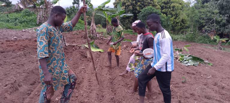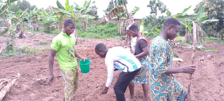Dans la deuxième moitié du mois de septembre, la petite saison s’est finalement annoncée dans le sud Bénin avec des pluies régulières. C’est donc l’heure des labours suivis des semailles. Point n’est besoin de trainer les pas. La saison risque d’être brève et peut s’interrompre à tout moment. Léon nous avait avertit nous pressant d’initier la préparation de nos espaces. Plusieurs cultures vivrières sont prises en compte : l’arachide, le haricot, le maïs, et du manioc. Il ne s’agit pas de grands champs. Juste de quoi couvrir le temps de soudure avant de nouvelles cultures.